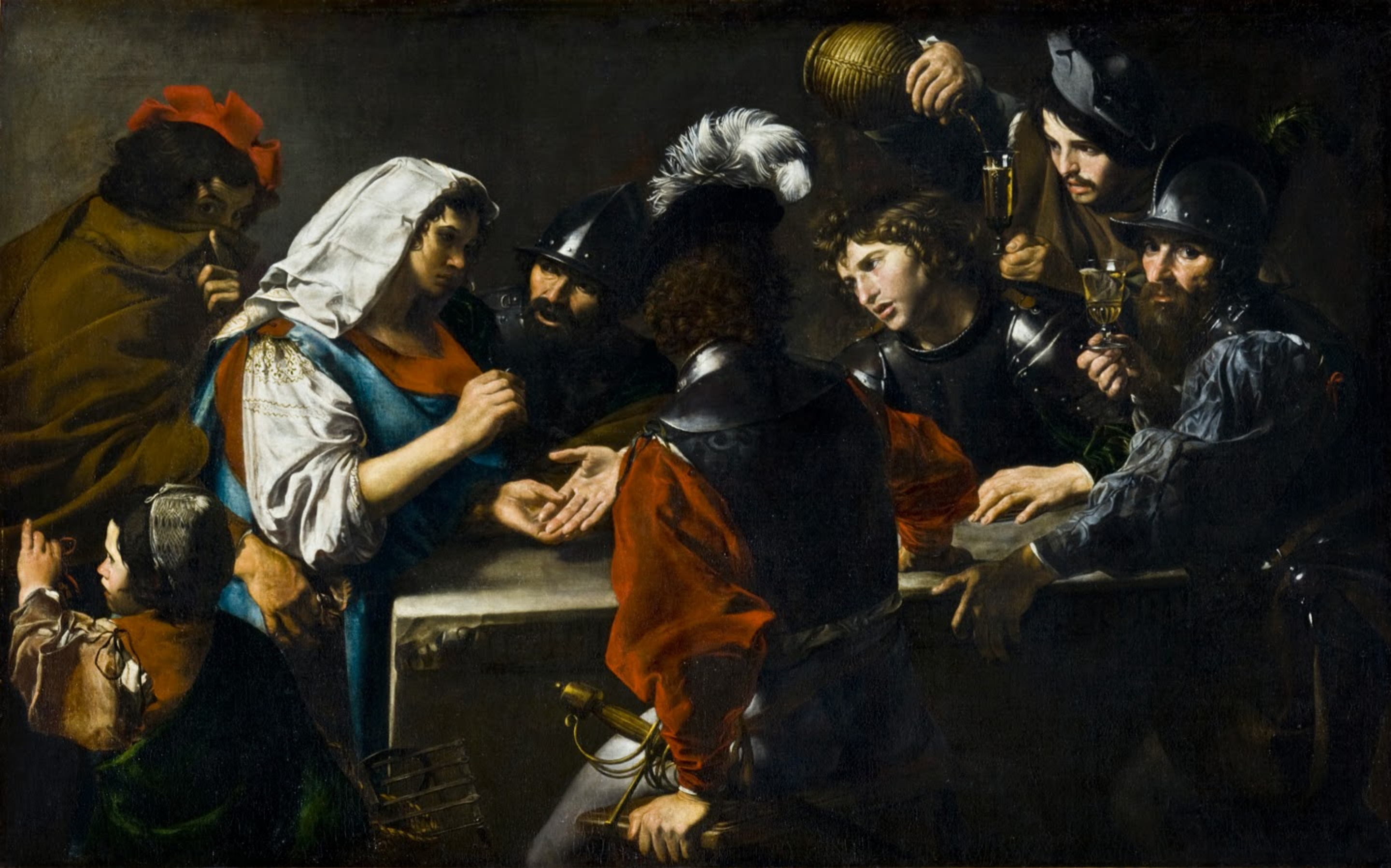 Сцена в таверне. Веласкес. 1618-1619 / Три музыканта. Веласкес. 1616–1618 / Гадалка и солдаты. Валантен де Булонь. 1620–1622