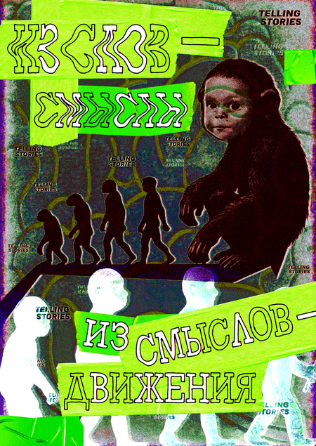 Плакат для мероприятия «Telling Stories», созданный при помощи искусственного интеллекта. Имеет статичную и анимированную версию.