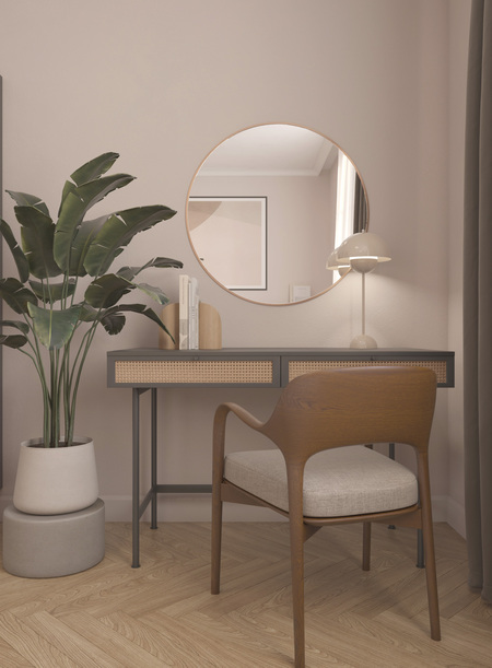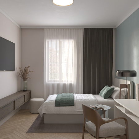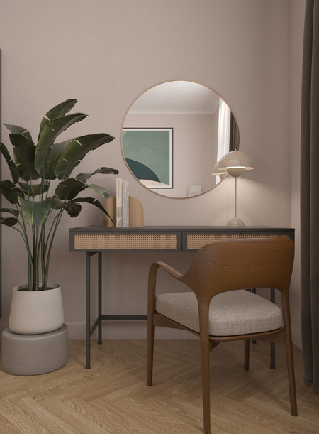 Визуализации данного проекта выполнялись в программе 3Ds Max совместно с рендер движком Corona. В данной презентации будут описаны технические моменты, связанные с его созданием. В проекте применяется дневной сценарий освещения, созданный с помощью Corona Sun и Sky, между инструментами должен быть найден баланс, иначе могут возникнуть пересветы. Неординарным способом был создан фон за окном, это фотография с места расположения объекта, которая нанесена на плоскость и является самосветящимся материалом.