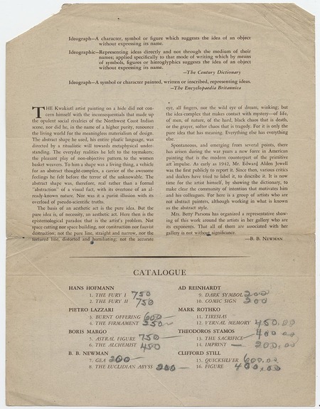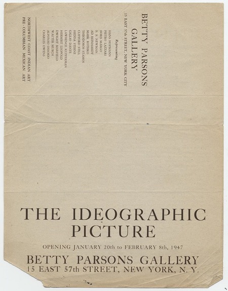 The Ideographic Picture exhibition, Betty Parsons Gallery, 1947 Jan. 20-Feb. 8. Betty Parsons Gallery records and personal papers, 1916-1991. Archives of American Art, Smithsonian Institution.