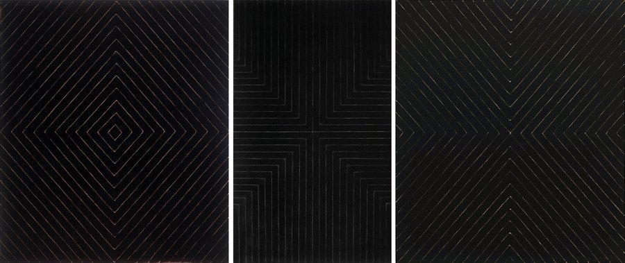 Эта темная серия работ Френка Стеллы, где каждое полотно состоит из симметричных композиций с геометричными линиями, совмещает в себе принципы контролированного и свободного потока. Каждая линия написана рукой художника: подтеки краски, неровности и неоднородность цвета — все это становится частью картины и отражает ее автора. Только в создании композиции Стелла опирался на объективность и строгость, и это единственное, что контролировало руку художника в написании этой серии.