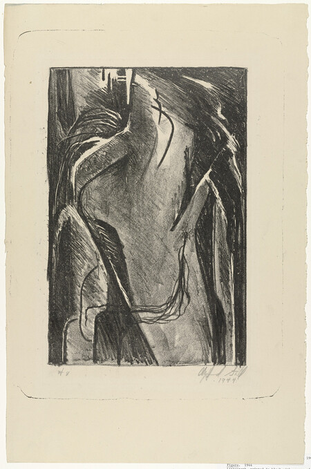 Клиффорд Стилл, Figure, 1944, линогравюра и мелок, 33,3×21.9 см; Ханс Хоффман, Fury: Painting after the War, 1945, масло на доске, 141×111.8 см, Courtesy Bastian