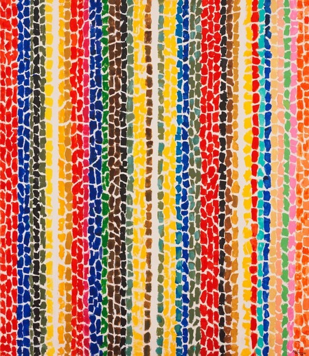 В работах Альмы Томас можно заметить отсылку на плиточные мозаики, каждый отдельный мазок краски встает за другим, напоминая аппликацию, в которой каждый кусочек имеет свое место и подчиняется общей системе.