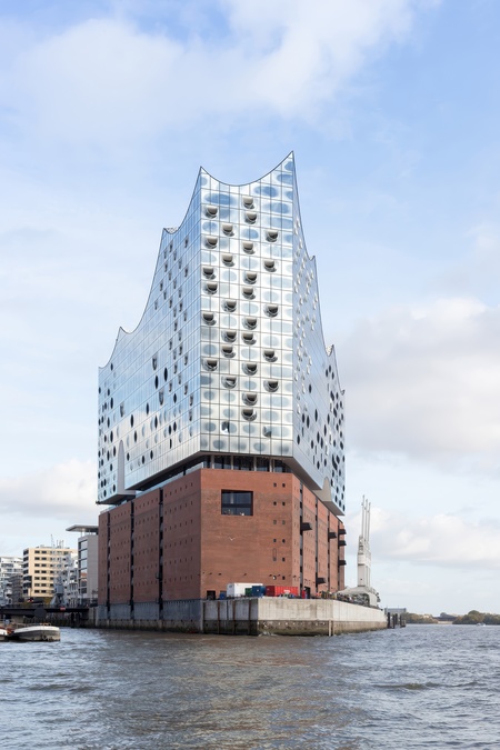 Эльбская филармония в Гамбурге была реконструирована архитектурным бюром Herzog & de Meuron. Архитекторы славятся своей экспериментальной техникой работы. Надстройка, которую можно наблюдать на фотографиях возведена из стекла над зданием склада Kaispeicher. Склад был построен в 1963 году, однако в 2017 правительство города решило «разбавить» городской облик чем-то современным. Теперь в месте, где раньше хранилось какао проводятся концерты.
