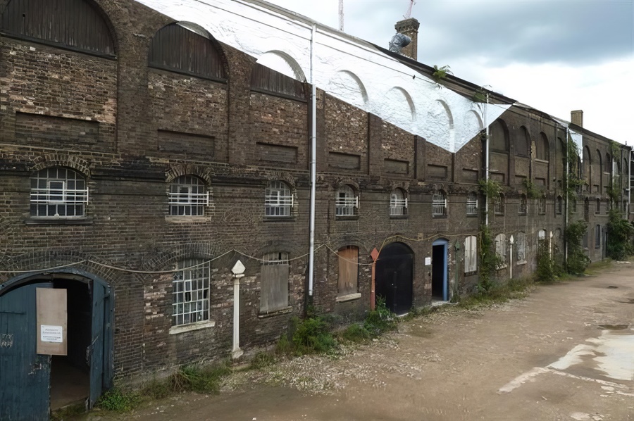1. Kings Cross Coal Drops Yard, Льюис Кьюбитт, 1850-е 2. Kings Cross Coal Drops Yard, Томас Хезервик, 2018 год