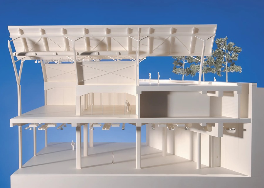 Архитекторы Herzog & de Meuron использовали кирпич для создания перфорированной решётки, пропускающей свет. Такая технология появилась совсем недавно. Благодаря использованию отработанного тепла и пассивному дизайну, проект потребляет на 54% меньше энергии и выделяет на 44% меньше углекислого газа по сравнению со строительными нормами.