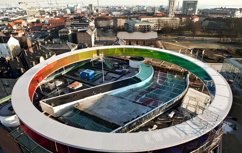Your Rainbow Panorama установлена как инсталляция на крыше уже существующего музея в Орхусе. Олафур Элиассон преследовал цель сотворить такое произведение искусства, которое объединило бы горожан и позволило им взаимодействовать с окружающим миром.