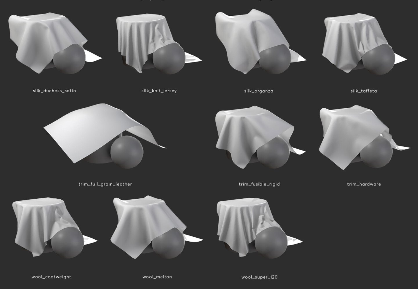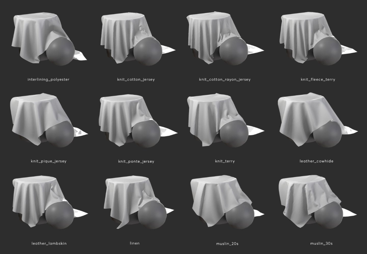 пресеты ткани в Clo 3D, как они будут выглядеть при симуляции