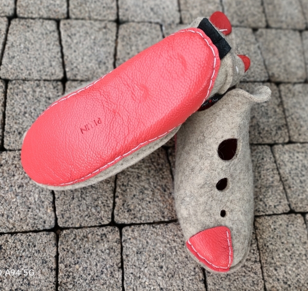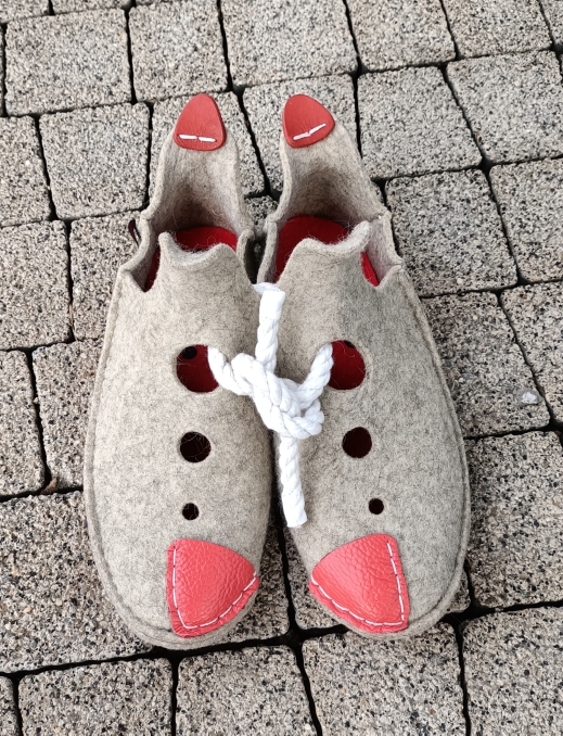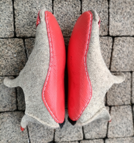 Войлочная обувь для друзей и загородной компании. Индустриальный войлок оптимального уплотнения и подошва из натуральной кожи позволяет плавно перемещаться с веранды в гостиную, влезать с ногами на диван, из мест скопления на кухню, а из неё в туалет и обратно. Обувь тепла и незаметна на ноге.