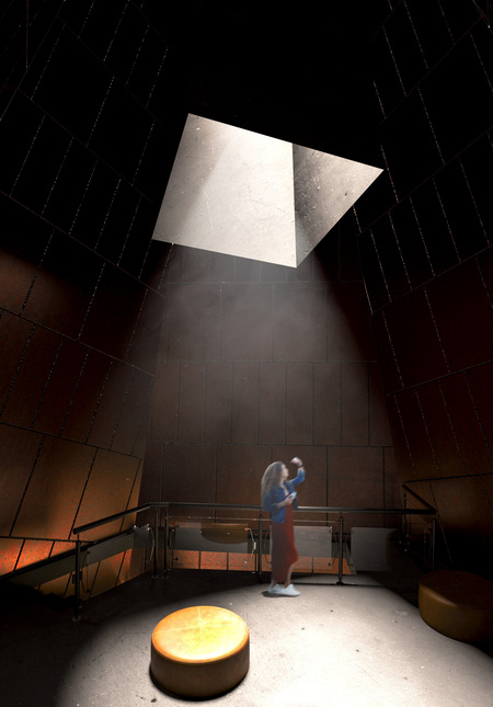 В первом зале музея свет «застает врасплох» посетителя, падая на него большим столпом с высокого потолка.