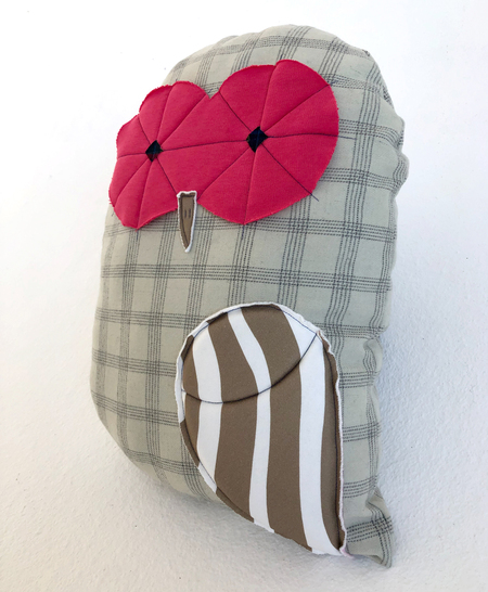 Подушку вполне можно воплотить в серийном производстве. Формы деталей простые, их легко вырезать, сшить и вывернуть. Глаза и крыло настрочены на тело совы с подложной из тонкого поролона. Мелкие детали можно вырезать из обрезков от других изделий.