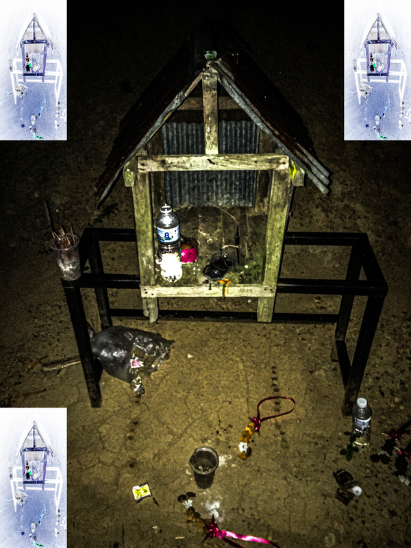 На севере Таиланда повсюду встречаются запущенные, разрушенные алтари, стоящие у пожарищ или диких мест. Вездесущие домики для духов на каждом углу — это особенность культуры — люди ставят их у собственных жилищ, приносят еду в дар и осыпают их цветами. В северных, более бедных регионах алтари часто делают своими руками, из того, что попадётся: ветхих досок, необтёсанных камней. Их могут ставить прямо у горной дороги, на вершине песчаного выступа или же прятать в диких джунглях, таким образом делая святое место и тайным, и доступным для незнакомца — на севере очень много пеших путешественников и монахов-кочевников. Из-за этого алтари часто оказываются потеряны, обретая новую сакральность. Покинутые людьми и утратившие защиту высших сил, они остались среди общей разрухи, всё больше ей поддаваясь. Смысл этих символов мутировал, и теперь колеблется между полярными значениями. При взгляде на них возникает странное, противоречивое ощущение. Чувствуется богохульство, падение неприкосновенного.