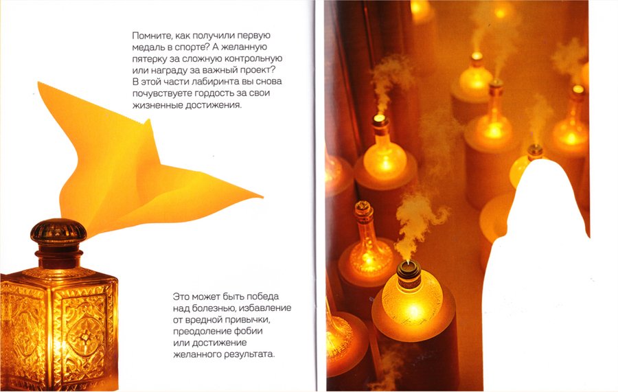 aromosphere — бренд, продающий ароматы и устройство, которое их записывает. Запахи могут не только ассоциироваться с предметами, но и навевать моменты. Именно поэтому мы создали лабиринт воспоминаний, который олицетворяет закаулки памяти. Вам захочется повторить эти эмоции, для этого мы организовали на втором этаже лабораторию для создания ароматов воспоминаний.