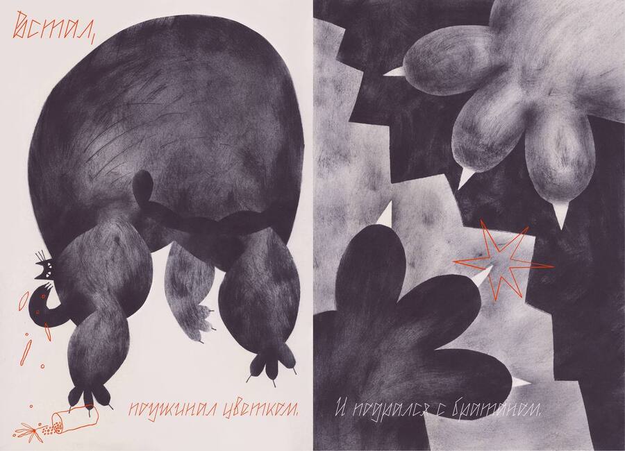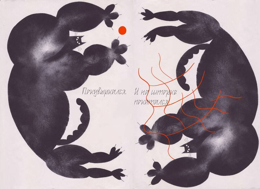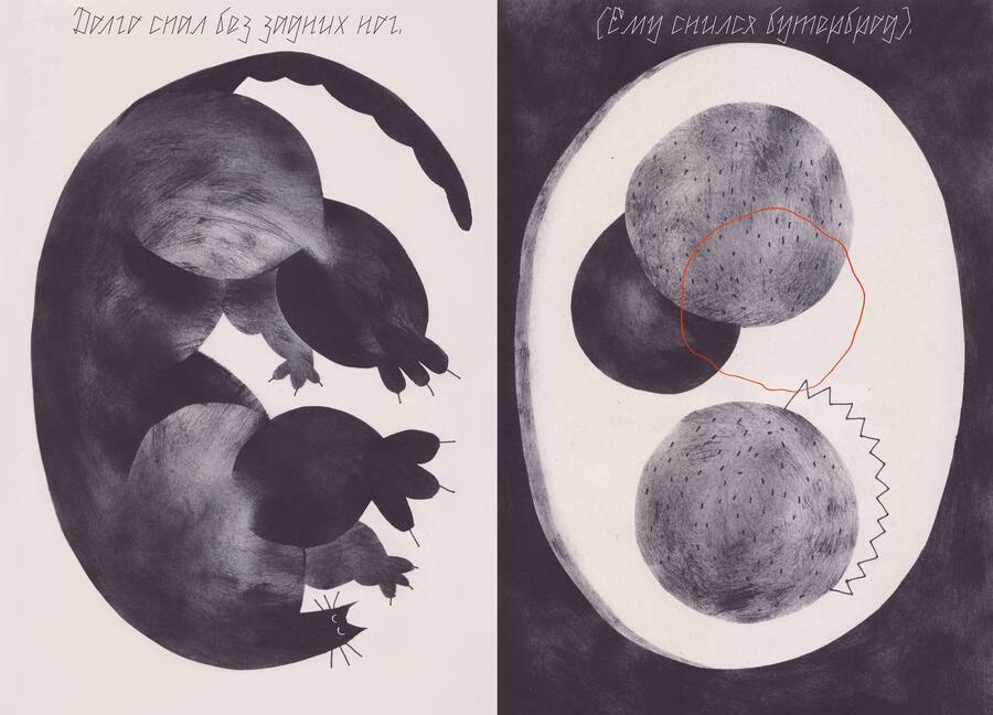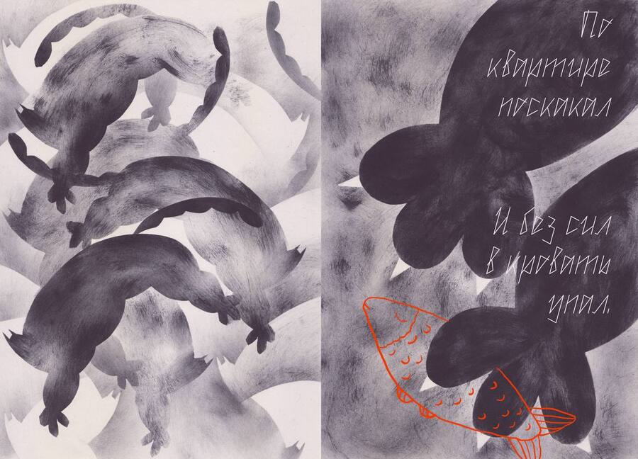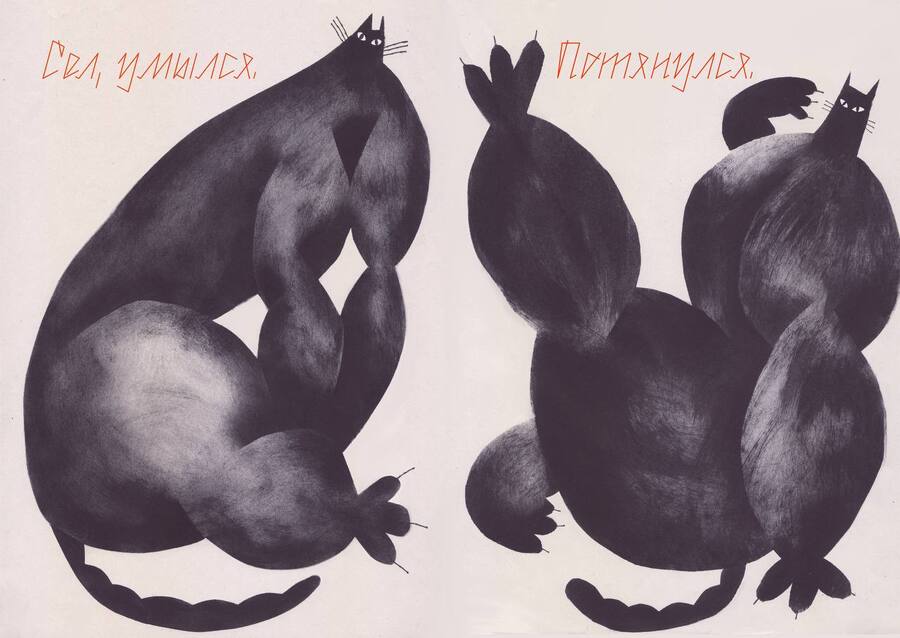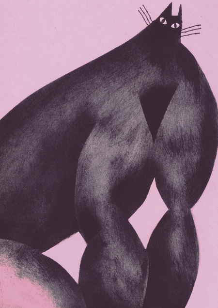 Здесь я показываю свой зин про сильного кота. Это история, в которой мы видим жизненный распорядок героя, его действия: как он просыпается, занимается своими делами и засыпает. Проект выполнен в технике трафаретной печати с цифровой дорисовкой.
