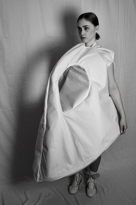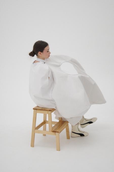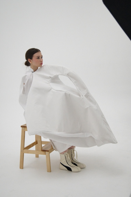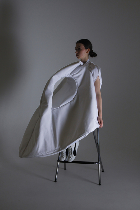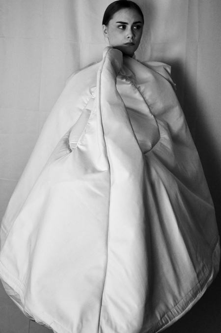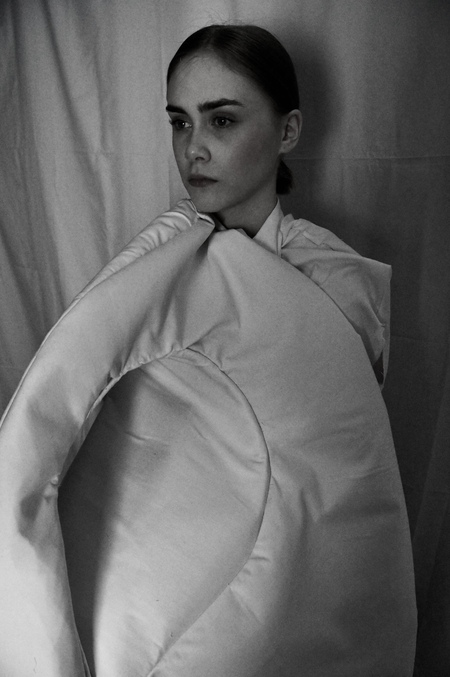 Я пытался передать формой изделия человеческий стержень. Способность преодолевать любые преграды на своём пути. Постоянное движение вперед, которое как-бы проходит насквозь, и разрубает любые проблемы встречающиеся в жизни человека.