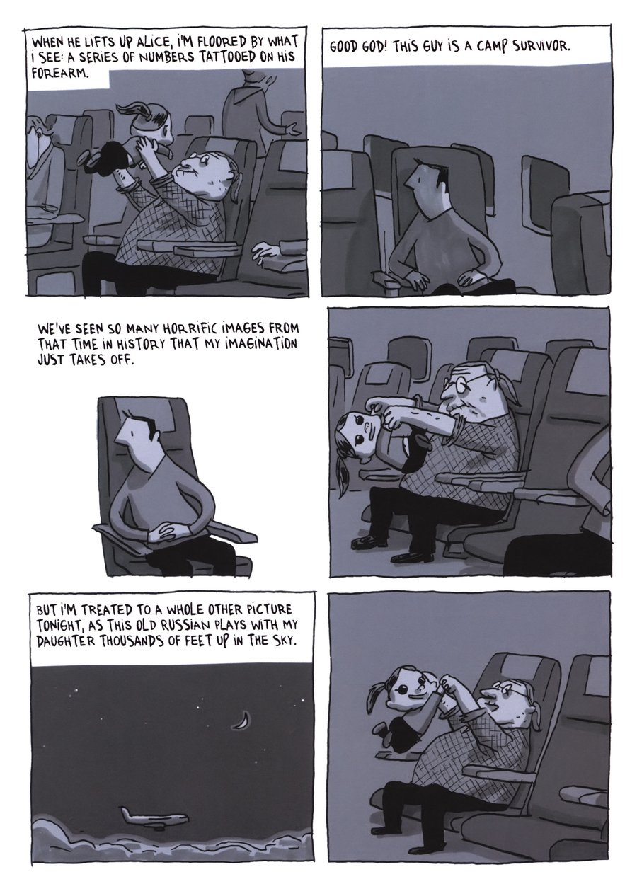 Изображение автором выжившего в Холокосте человека как попутчика в самолете создает ощущение общей человечности и общности, несмотря на культурные и исторические различия между ними. Показывая историческую травму Холокоста в рамках более широкого повествования об Иерусалиме, Ги Делиль признает сложность культурных историй и важность осторожного и уважительного подхода к деликатным темам.