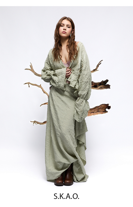 Концепция бренда S.K.A.O. — это соединение силы природы, величия космоса и тонкой гармонии, воплощенной в женской одежде, которая сочетает в себе стойкость и нежность, решительность и мечтательность. Как орган, который соединяет в себе различные регистры для создания гармонии, так и бренд S.K.A.O. гармонично сочетает грубые и мягкие линии, традиционные и современные элементы, чтобы создать уникальные образы. Это одежда для женщин, которые ощущают свою связь с природой, стремятся к высотам, но при этом сохраняют внутреннюю уязвимость и утонченность. Дизайн одежды S.K.A.O. вдохновлен величием гор и красотой природы, где каждая деталь имеет свою ценность, как редкое и уникальное сокровище. В этой одежде женщина может чувствовать себя как частичка чего-то большего, носить с собой силу и магию природных стихий, сохраняя при этом свою индивидуальность и элегантность. Концепция бренда — это создание многослойных, гармоничных образов, которые передают глубину и эмоции, сочетая природную силу с утонченной красотой. S.K.A.O. — для тех, кто ищет не просто стиль, но и смысл, вдохновляясь величием природы и стремлением к познанию.
