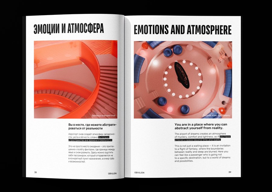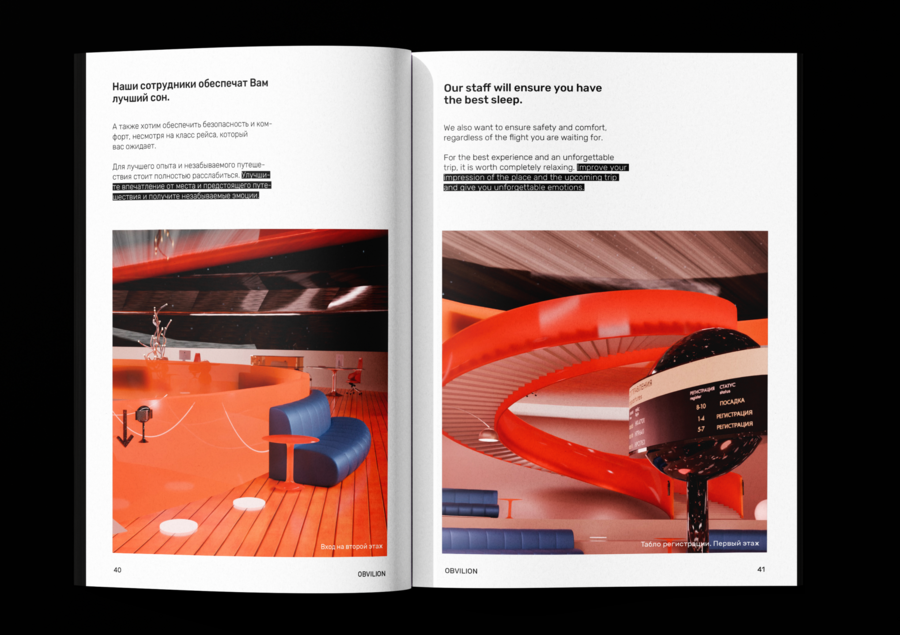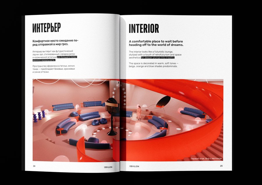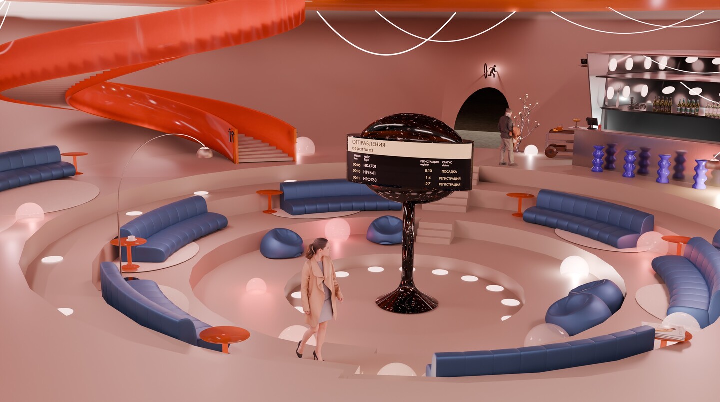 Пространство представляет собой зоны ожидания и регистрации перед вылетом в мир сновидений после прохождения проверок багажа эмоций и досмотра паспорта пройденных снов. Чувствуйте себя как дома и позвольте нам сделать ваш полет незабываемым!