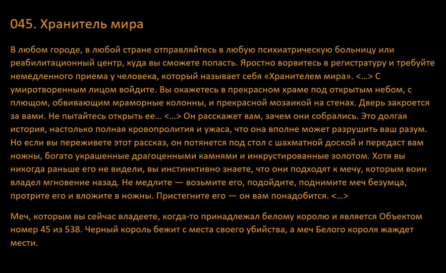 Скриншот части оригинальной статьи с The Holders Wikia и вольный перевод сокращённого варианта