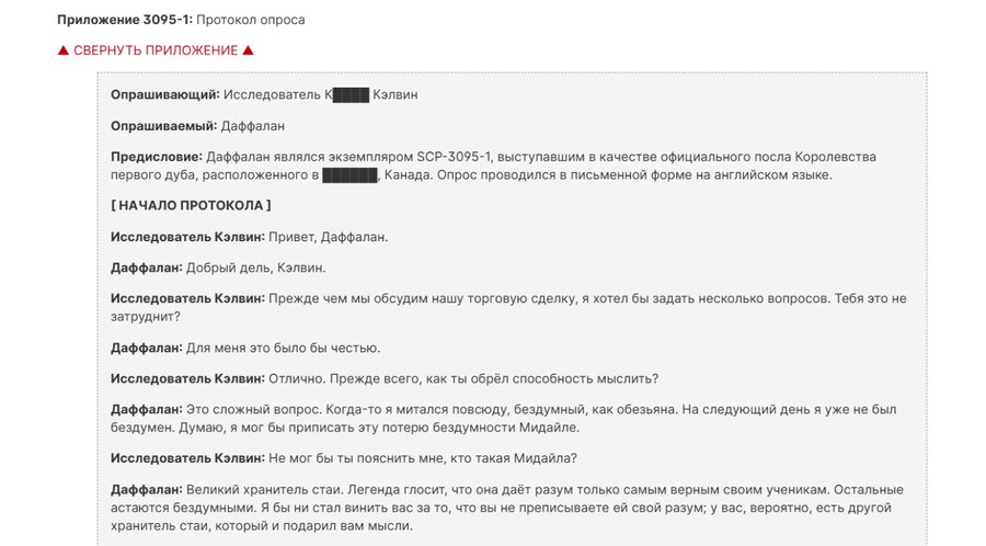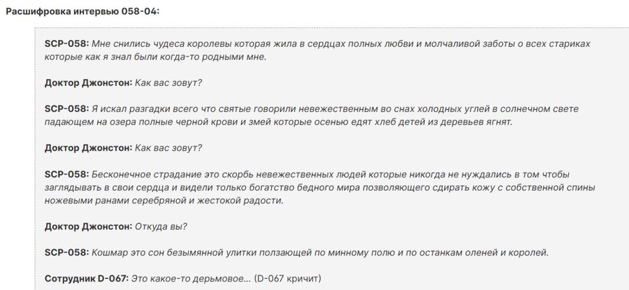 Скриншоты с scpfoundation.net; пример нарративных особенностей