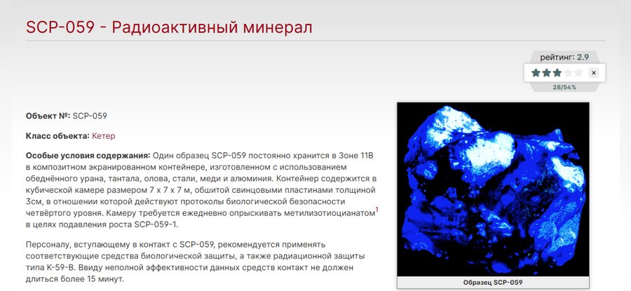SCP-059 — Радиоактивный минерал / far2 [Электронный ресурс] // SCP Foundation: [сайт]. — URL: https://scpfoundation.net/scp-058 (дата обращения: 21.05.2025).