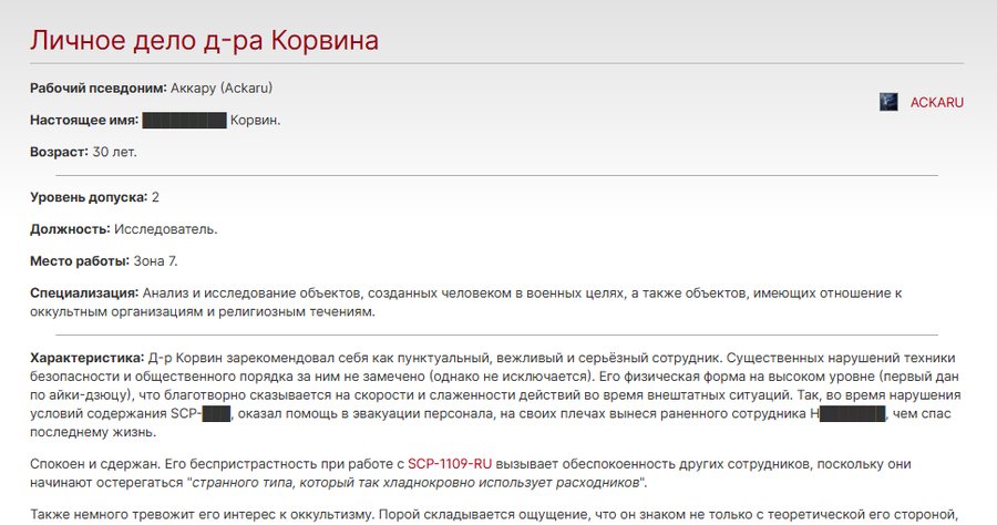 Личное дело д-ра Корвина / [Электронный ресурс] // SCP Foundation: [сайт]. — URL: https://scpfoundation.net/scp-058 (дата обращения: 21.05.2025).