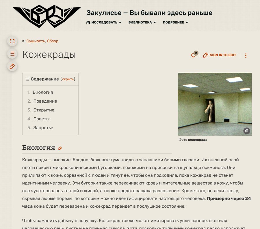 Скриншоты статей из русскоязычного Backrooms Wiki