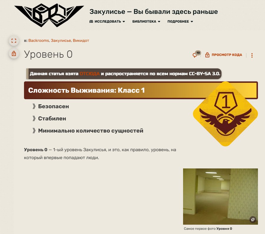 Уровень 0 / [Электронный ресурс] // Закулисье: [сайт]. — URL: https://backrooms.fandom.com/ru/wiki/%D0%A3%D1%80%D0%BE%D0%B2%D0%B5%D0%BD%D1%8C_0 (дата обращения: 21.05.2025).