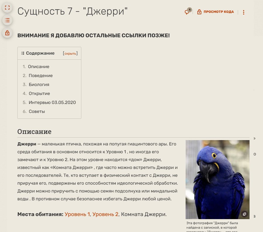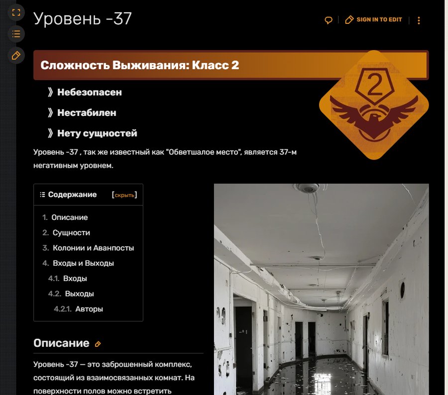Статьи на сайтах по обычаю имеют чёткую структуру: общие характеристики и уровень опасности, описание и история обнаружения, наличие аванпостов, входы и выходы с уровня.