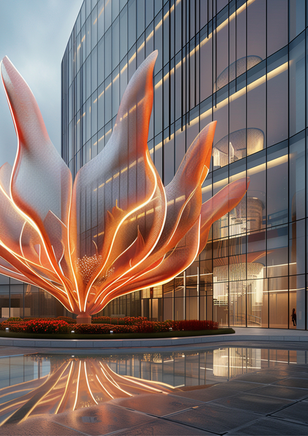 a big building of the center of psychological help in the city, associations should be connected with a fire flower, use soft lighting