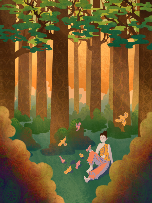 Серия портретных иллюстраций, посвященная Сиддхартхе Гаутаме — основателю буддизма. На иллюстрациях Будда изображен с птицами по аналогии со свободой и «Золотой клеткой»