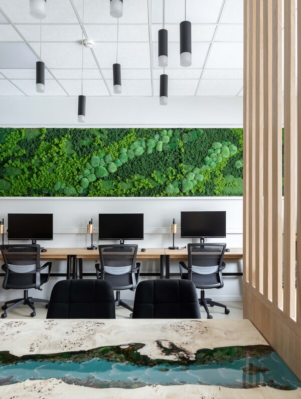 Научно-образовательный центр (НОЦ) кафедры экологического, земельного и градостроительного права МГУ юридического факультета Объект расположен в Москве, на Ленгорах в МГУ. Это новый современный корпус юридического факультета среди исторических корпусов государственного университета имени Ломоносова. НОЦ — это площадка для взаимодействия, общения преподавателей и их студентов. Здесь проводятся различные образовательные мероприятия. Необходимо было реализовать концептуальный интерьер. Сделать комфортную планировку с рабочей и зоной отдыха, расположить все необходимое, продумать системы хранения и не перегрузить. Нужны были оригинальные решения для оформления. Выделить акценты — логотип, панно, стол для переговоров, столешницу — подоконник и визуально скрыть личное пространство — мини-кухню.
