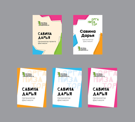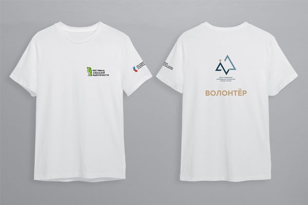 Для волонтеров, которые обеспечивали функционирование площадок и для организаторов были разработаны тематические футболки и бейджи в стилистике брендбука.