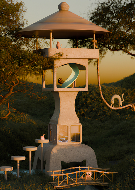 Как выглядит идеальная академия для котов самых разных характеров? Академия находится в естественной природной среде, где каждый котик будет чувствовать себя в безопасности и уюте. В этом пространстве есть все для идеальной жизни и получения самых сокровенных знаний. Каждый котик найдет для себя свой уголок счастья. Оно лаконичное, простое, но в то же время функциональное.