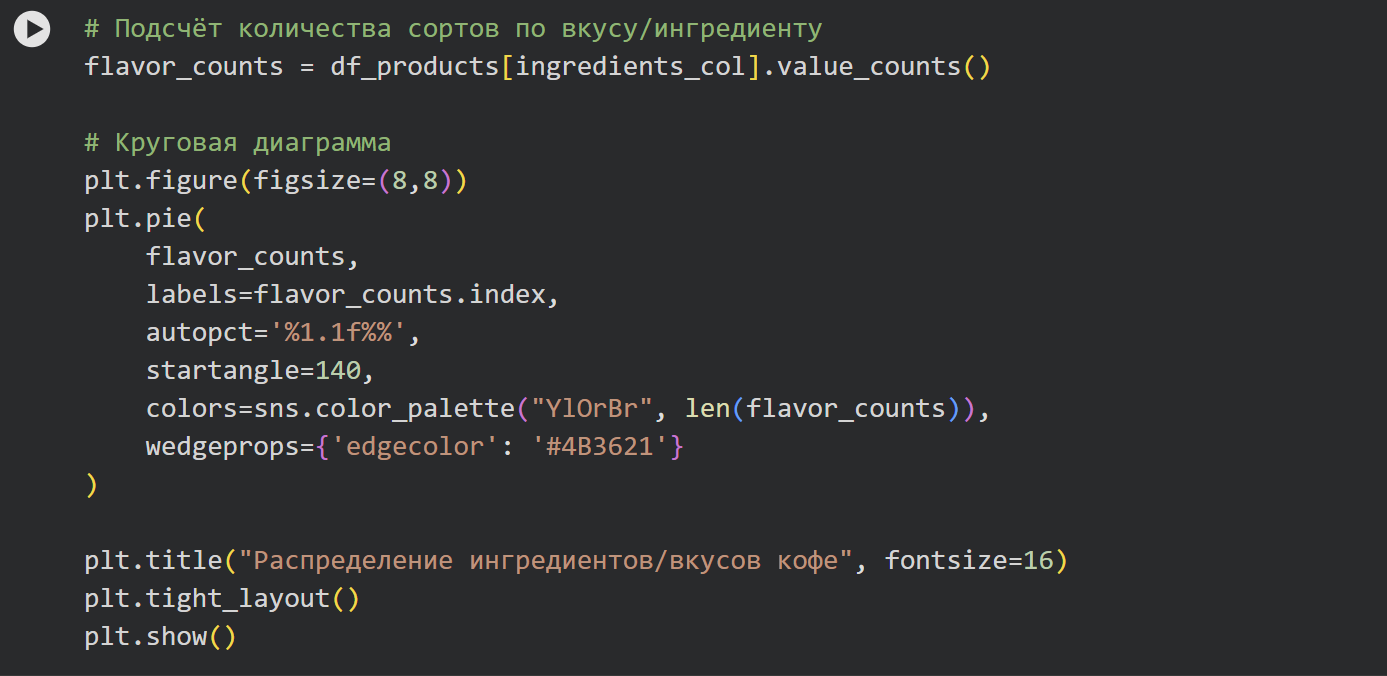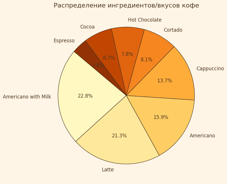 График 5: Круговая диаграмма распределения ингредиентов/вкусов кофе