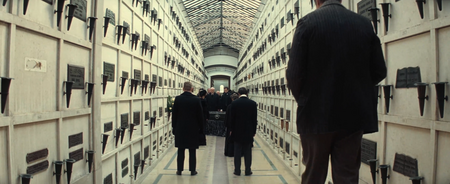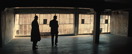 В сцене, когда агент навещает Бордена и предлагает уход за его дочерью в обмен на секреты его трюков, мы видим «грязную восьмерку». Между героями решетка. Это прямым текстом говорит, о физическом барьере и границе, созданную предательством и несправедливостью.