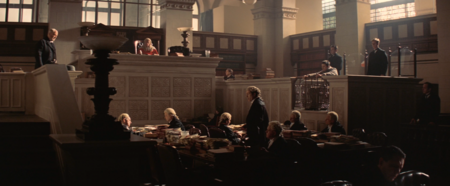 Здесь очень многие формы квадратные и напоминают клетку. Это и стекла, и деревянные панели в суде, и ячейки на похоронах.