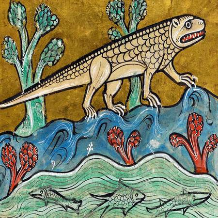 В бестиариях говорилось, что крокодил горько плачет после того, как съест человека. Гидрус являлся врагом крокодила. Замечая, что крокодил спит, он, извалявшись в грязи, заползал ему в рот. Крокодил проглатывал гидруса, но тот выходил из него нетронутым, разодрав ему все внутренности. Крокодил символизировал ад и смерть, а гидрус Иисуса Христа, побеждающего зло.
