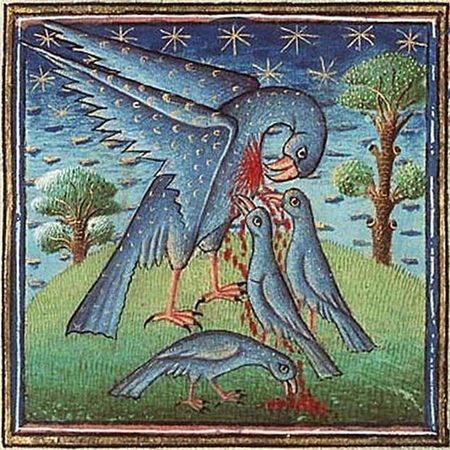 Он являлся самым распространённым символом Иисуса Христа, который пожертвовал своей плотью ради спасения людей. Считалось, что пеликан вскармливает птенцов своей кровью.