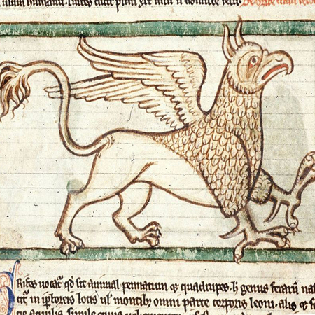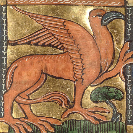Огромный лев с головой, крыльями и лапами орла. Он очень враждебен к лошадям. Считалось что обитает в Индии и Скифии. Мог олицетворять собой дьявола, который уносит души грешников в пустыню ада, чтобы поглотить их там.
