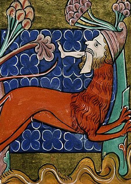 Чудовище, обитавшее в Индии. Имеет лицо человека, тройной ряд зубов, яркокрасное львиное тело. Она шипит, как змея, и иногда может летать. Питается мантикора человеческим мясом.