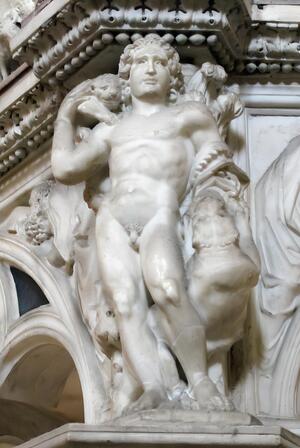 Видна прямая цитата с античных саркофагов: герои, особенно нагие или полунагие, изображены с реалистичной мускулатурой и анатомией.