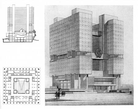 Вероятно, эта постройка оказала ощутимое влияние на архитекторов того времени. Чертежи Дома Советов / Дворец национального конгресса Бразилии. Оскар Нимейер (1960)