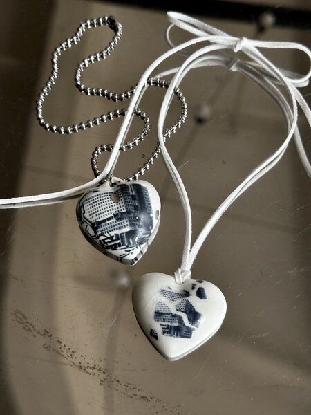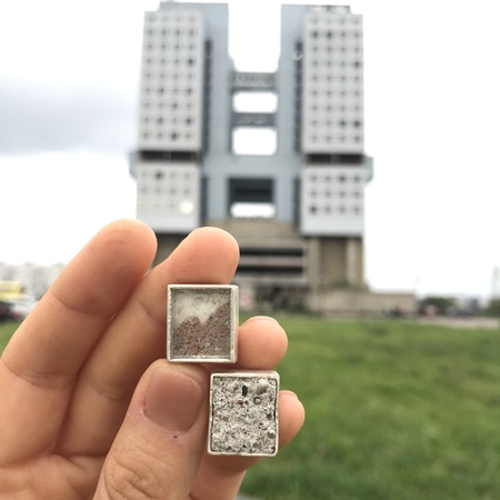 Аксессуары с изображением Дома Советов / Фарфоровые сердца от Nneo Pearly / Серьги Beton.und.glas
