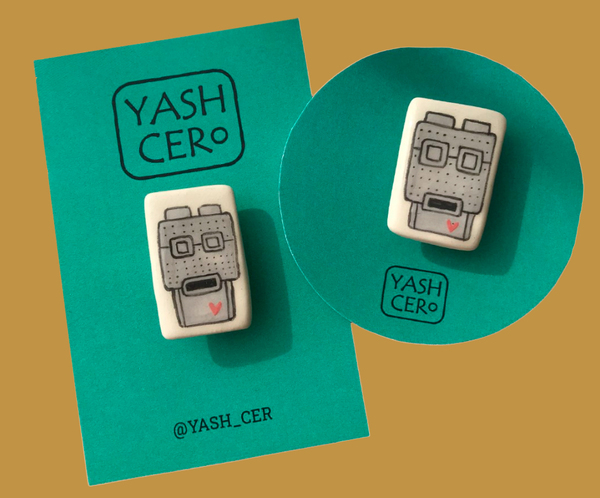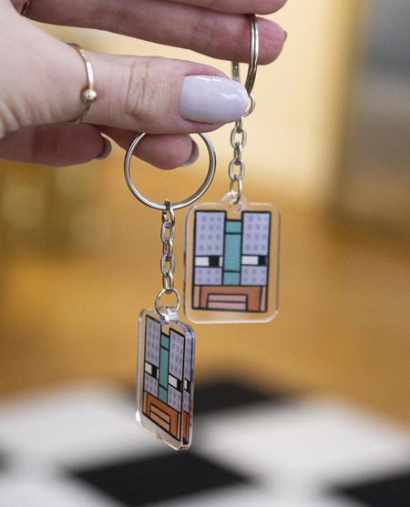 Аксессуары с изображением Дома Советов / Брелки от «Рыжей зари» / Керамические значки художницы Яши Шульги