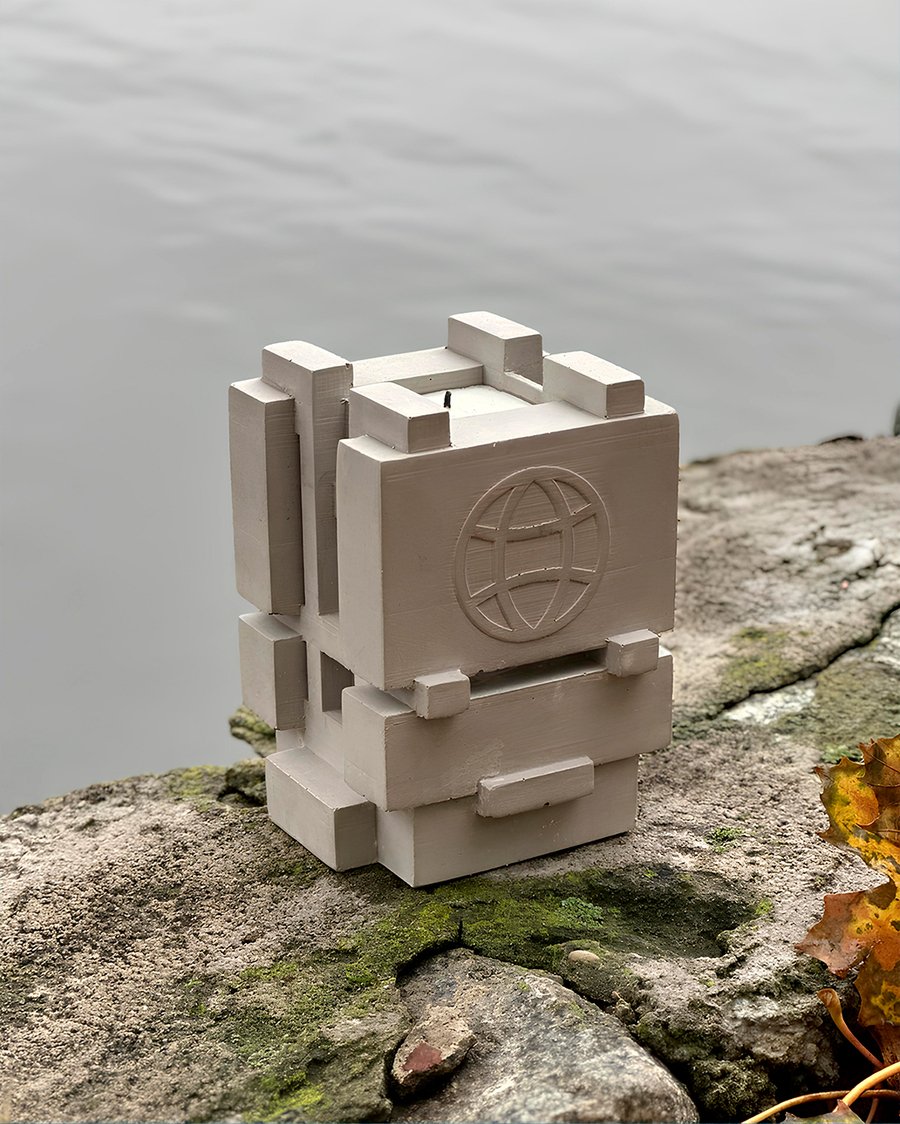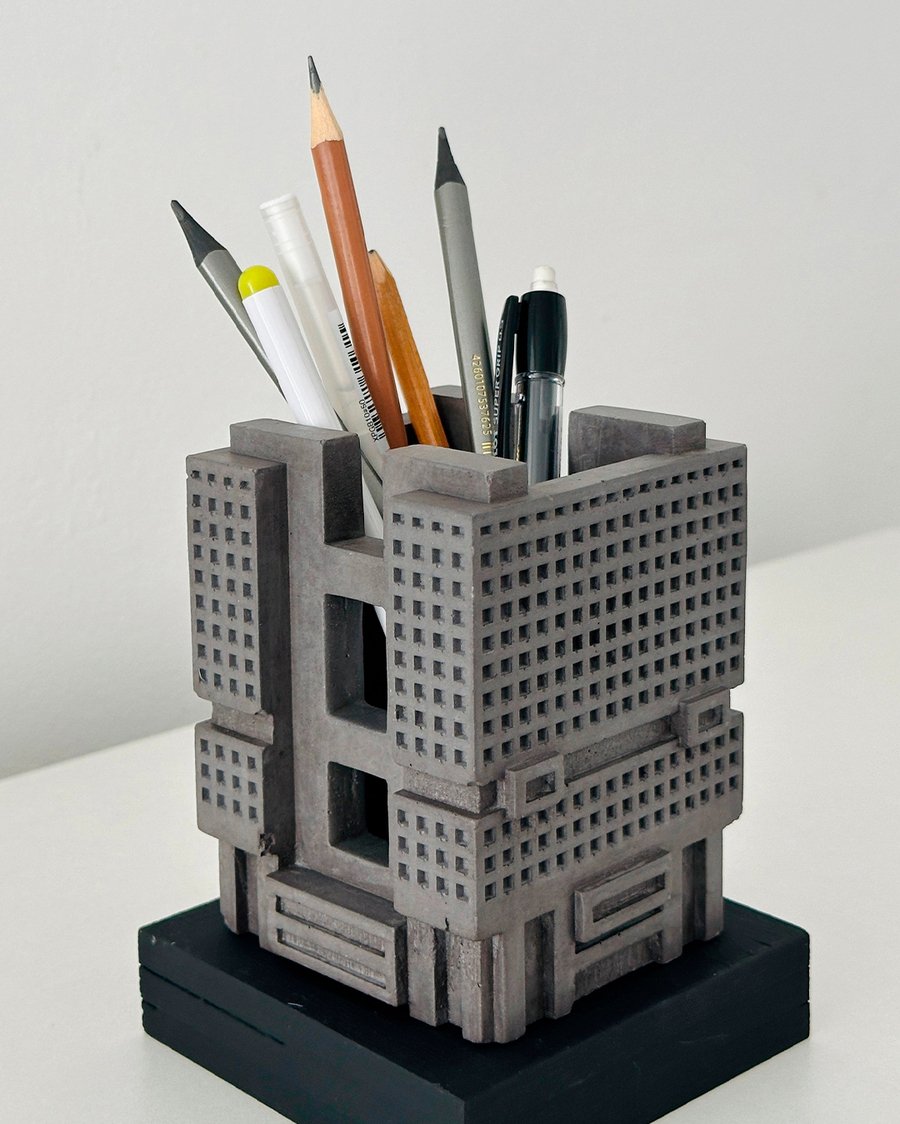 Дом Советов и интерьер / Карандашница от Beton.und.glas / Соевая свеча Ильи Муха / Подсвечник от бренда «Союз»