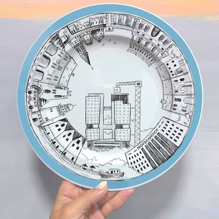 Дом Советов и интерьер / Глиняный изразец Мануфактуры Макса Пройса / Тарелка от «Керамостудия» из коллекции «Легенды города»