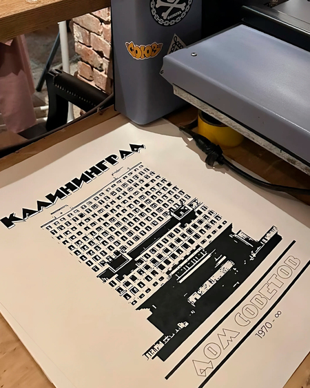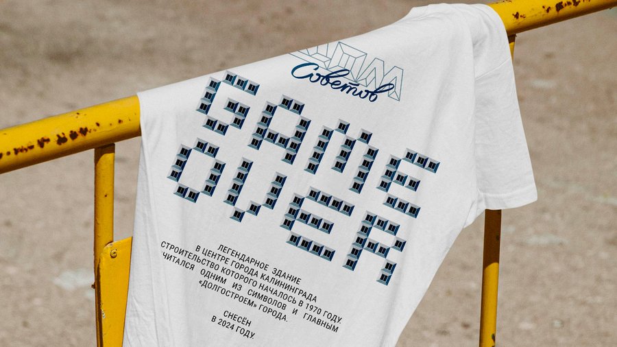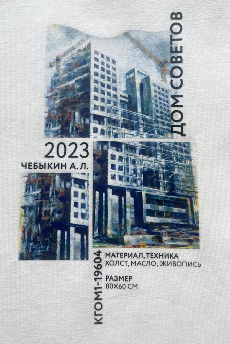 Футболка была создана в рамках коллаборации с Калининградским областным историко-художественным музеем. В основе принта — картина «Дом Советов» (2023) художника и архитектора Алексея Леонидовича Чебыкина из музейного архива.