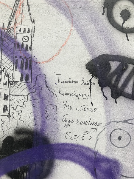 Для визуальной составляющей исследования я отобрала: архивные фотографии Кенигсберского замка и Дома Советов на разных этапах, проектные визуализации, пользовательские фото, найденные на различных форумах, фрагменты уличного и современного искусства, мерчи. Некоторые из фотографий сделала я сама или нашла в личном архиве.