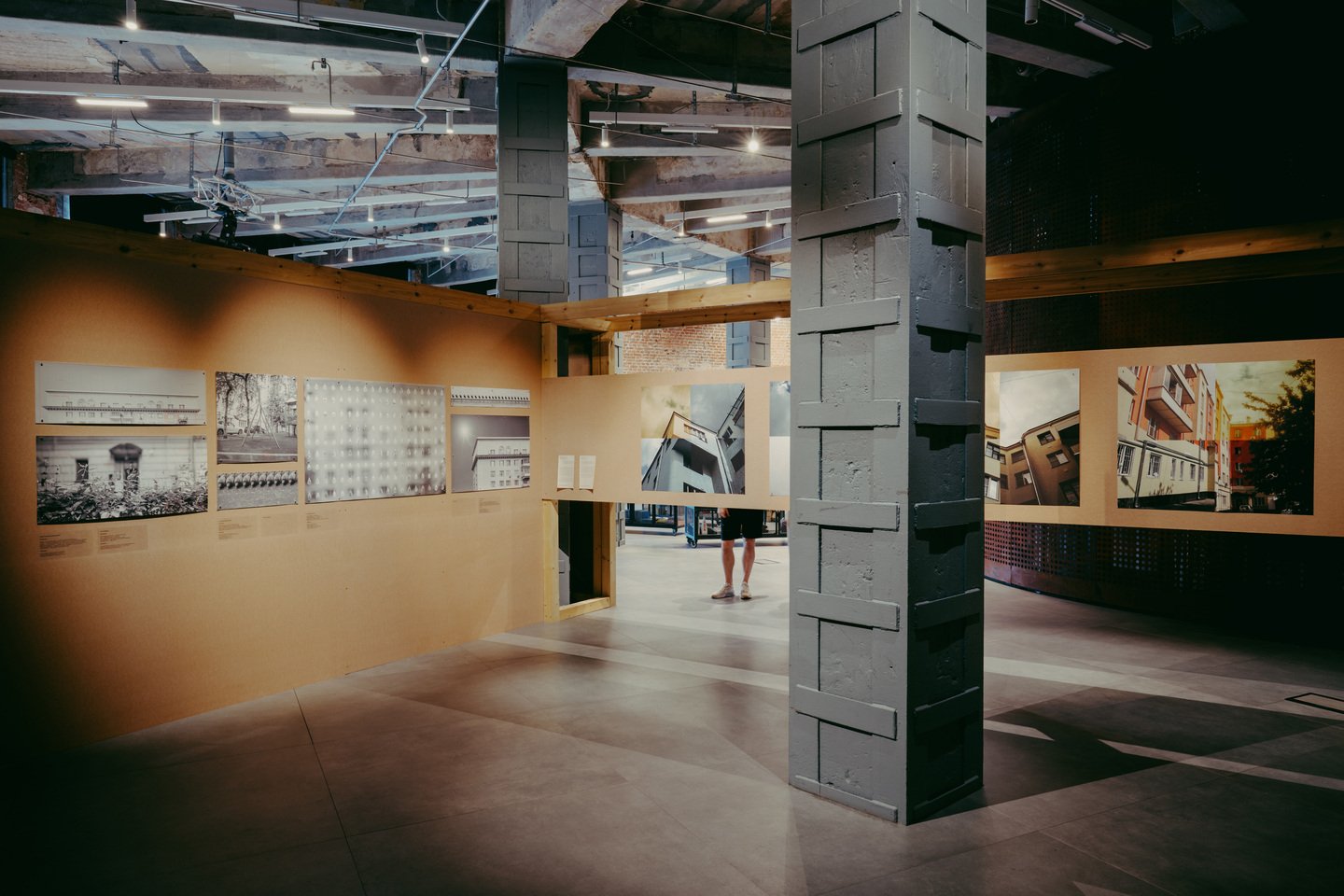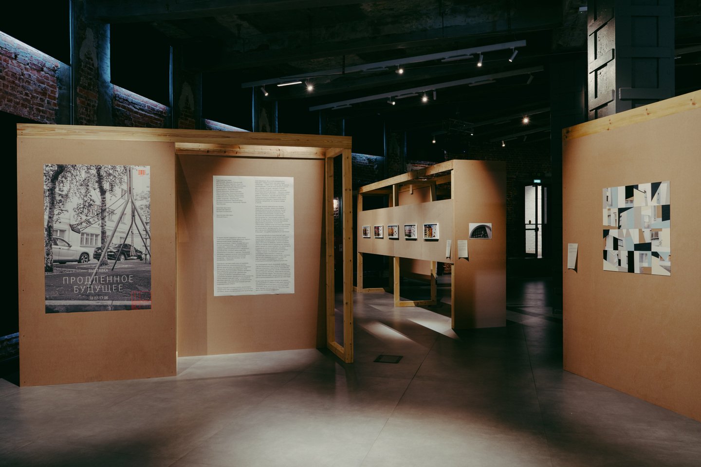 Архитектор выставки Алексей Корси спроектировал застройку как утопический собирательный образ рабочего поселка, по которому может прогуляться зритель.